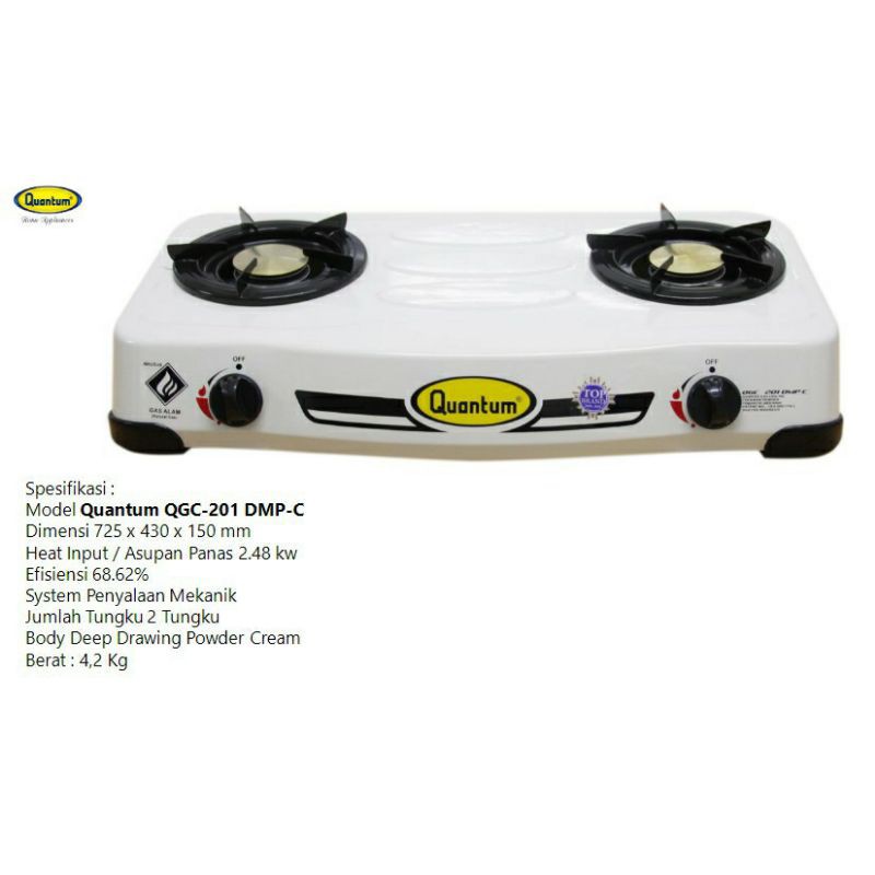 Quantum Kompor Gas 2 tungku QGC-201 DMPB Teflon Rp 324000. Kompor Gas Putih Quantum 1 Tungku QGC 101 RB 101RBRp155000. Masih ada banyak sekali model dan juga tipe dari kompor gas Quantum.