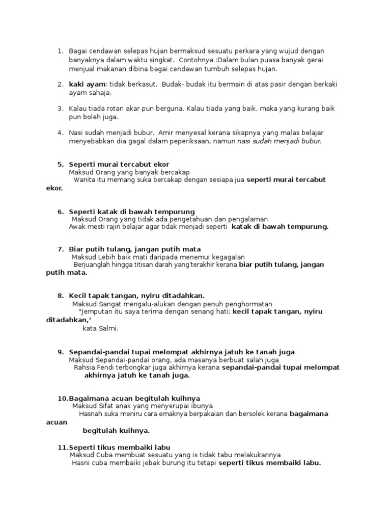 Kalau pandai meniti buih selamat badan sampai seberang 4. Rajin dan usaha tangga kejayaan. Arang habis besi binasa.