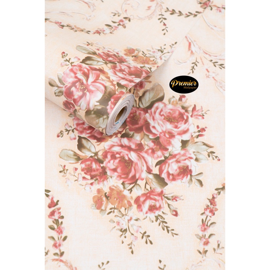 Jual Bunga Pink Dasar Cream Wallpaper 45cm X 10m Indonesia Shopee Indonesia